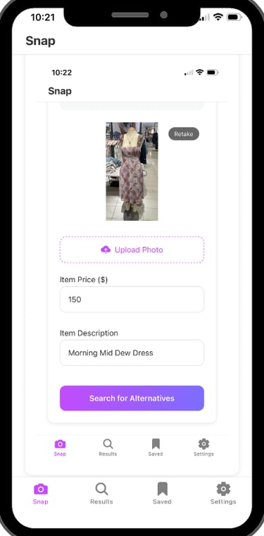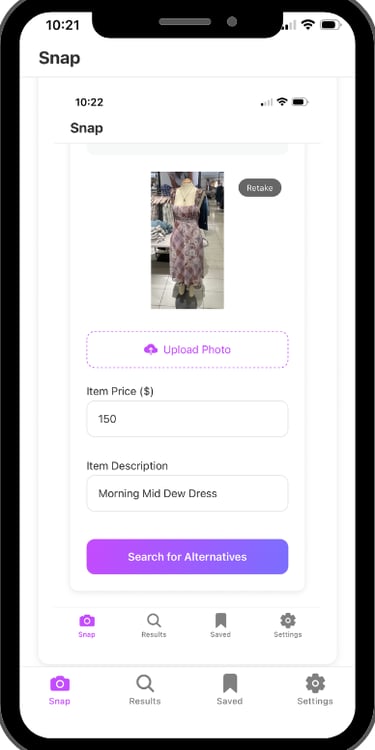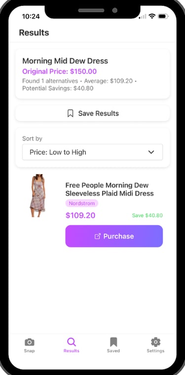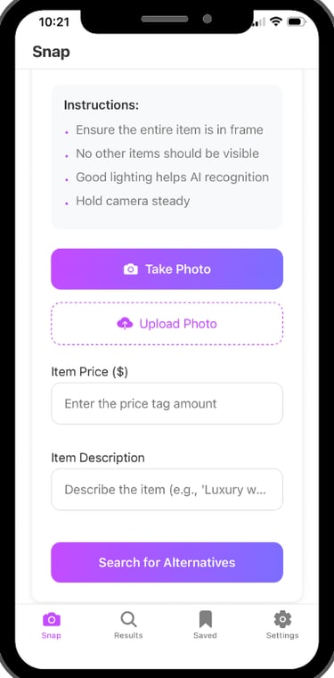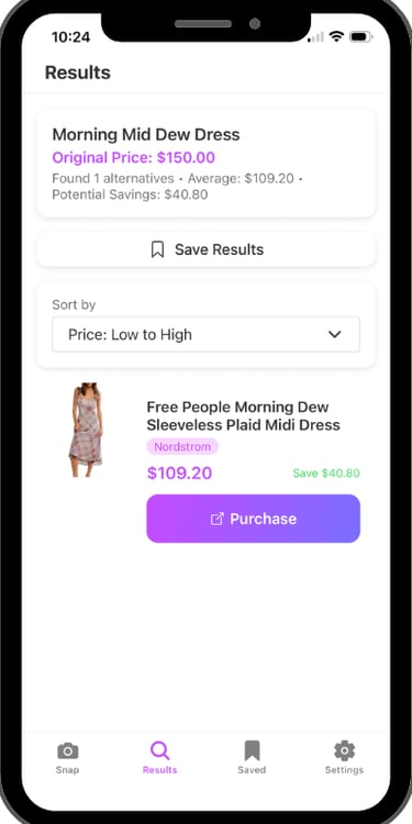 With Tagless, you no longer have to choose between desire and budget. Simply snap a photo of any item and Tagless will instantly find it (or something nearly identical) for a fraction of the price.