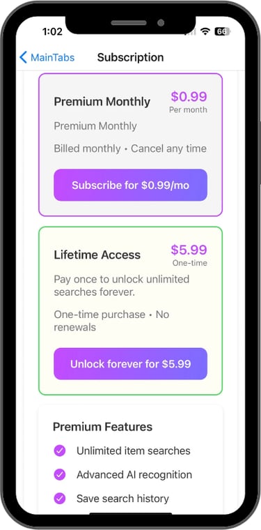 To use Tagless and all its features, you can sign up to pay $1 a month. This subscription gives you unlimited image searches, allows you to save your searches, and gives priority customer service.